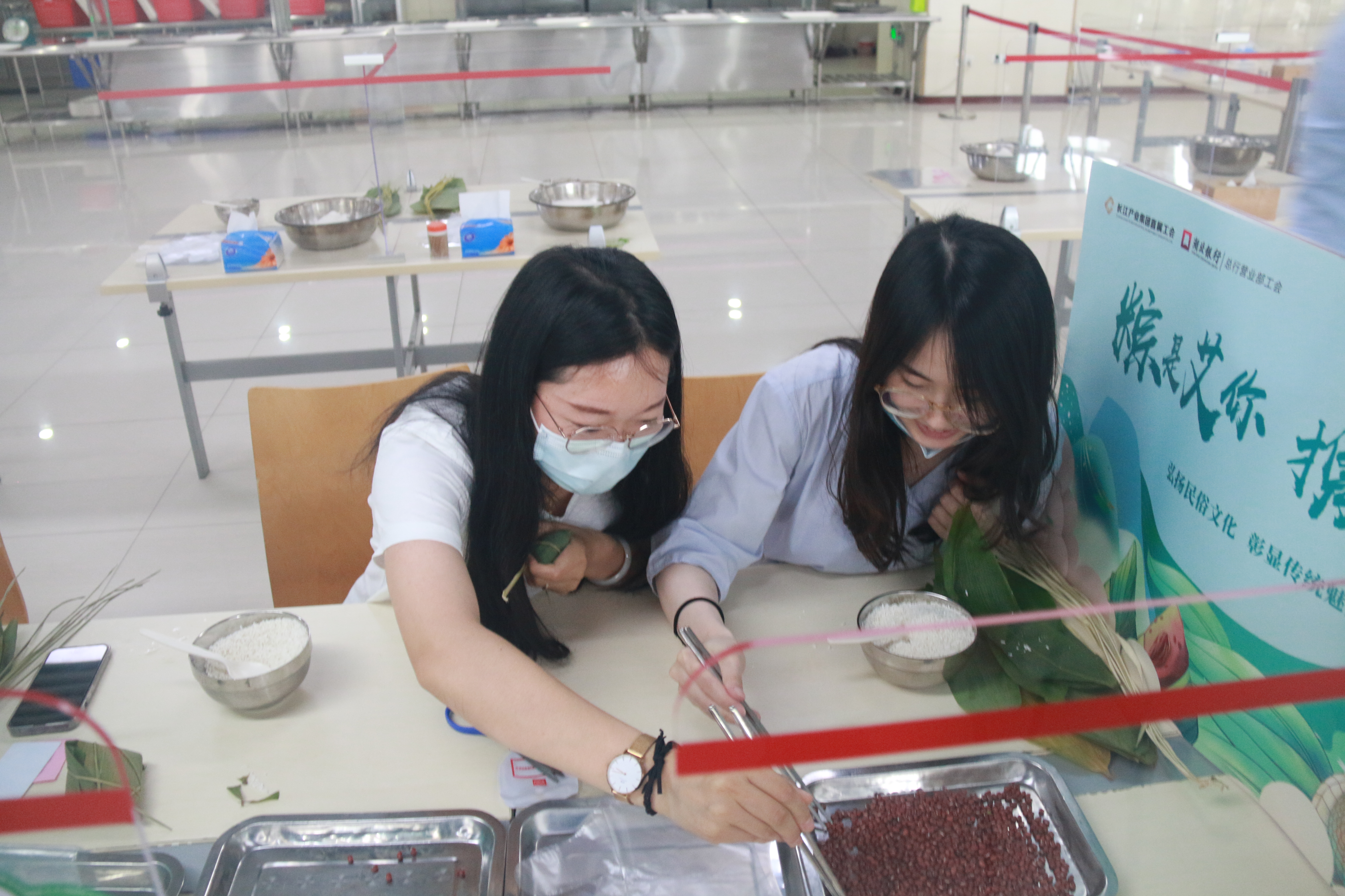 进入主题环节——包粽子,无论是“厨房小白”还是“武林高手”大家都兴趣盎然、干劲十足,泡好的糯米、粽叶,拌上红豆,在他们的巧手中变成一个个三角形、枕头形、长条形等各式各样的粽子。大家聚在一起亲切交流并分享包粽子技巧,现场一片欢声笑语,浓浓的节日氛围也拉近了彼此的心。