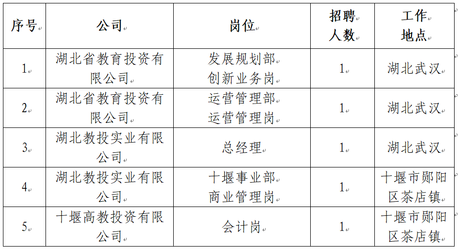 岗位职责及任职资格详见《湖北省教育投资有限公司公开招聘岗位信息表》(附件1)。