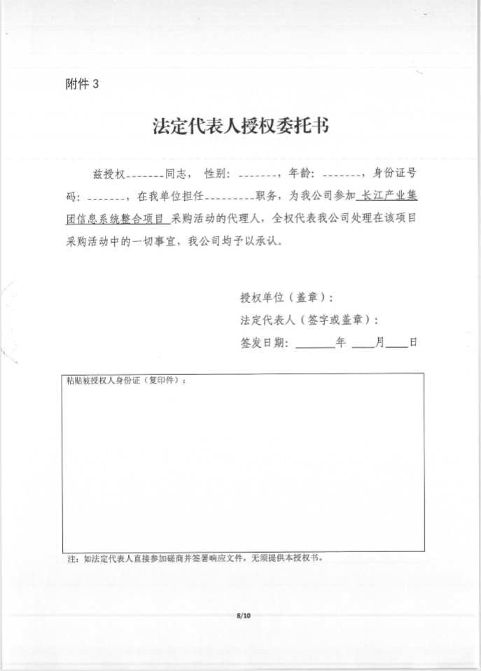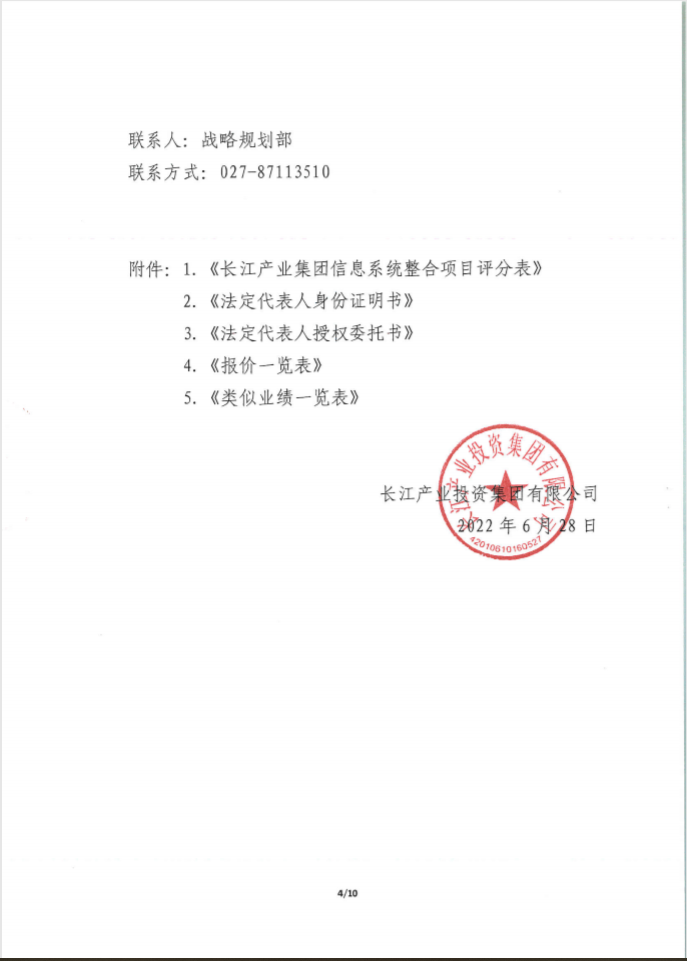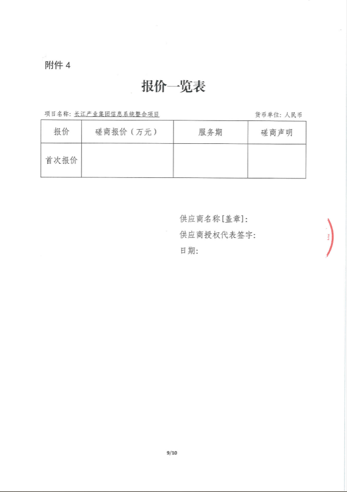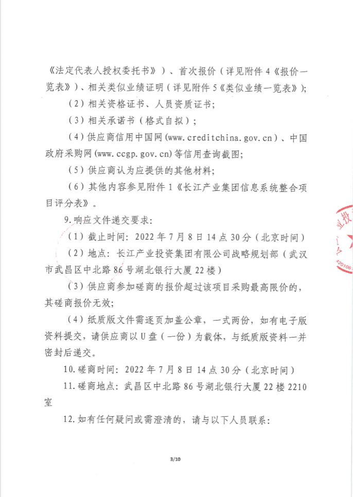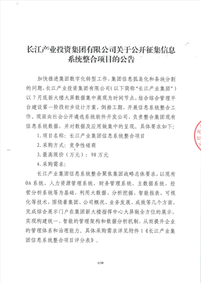 长江产业投资集团有限公司关于信息系统整合项目竞争性磋商的公告