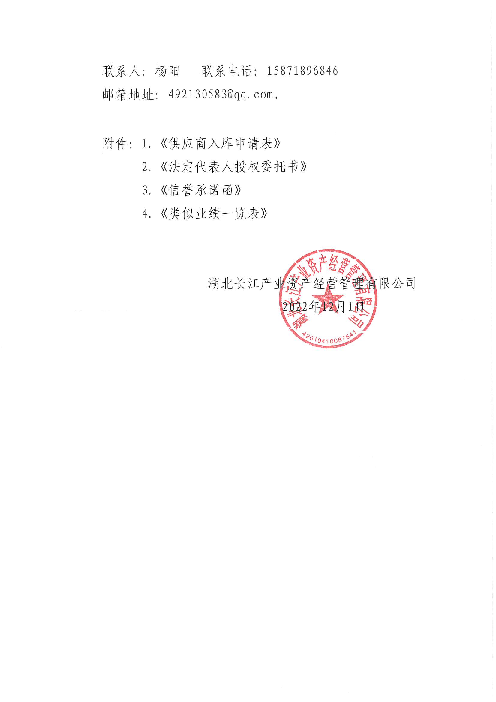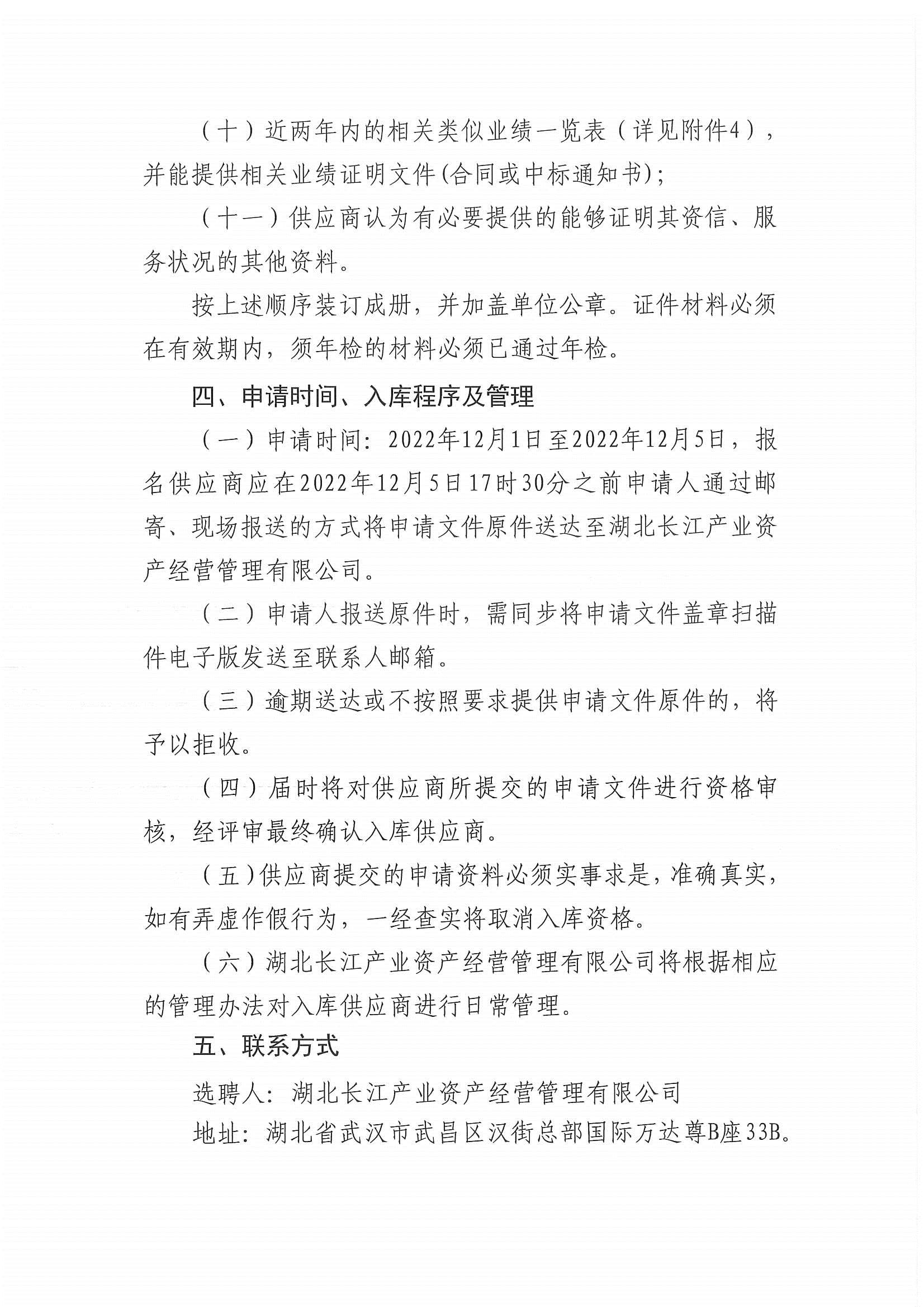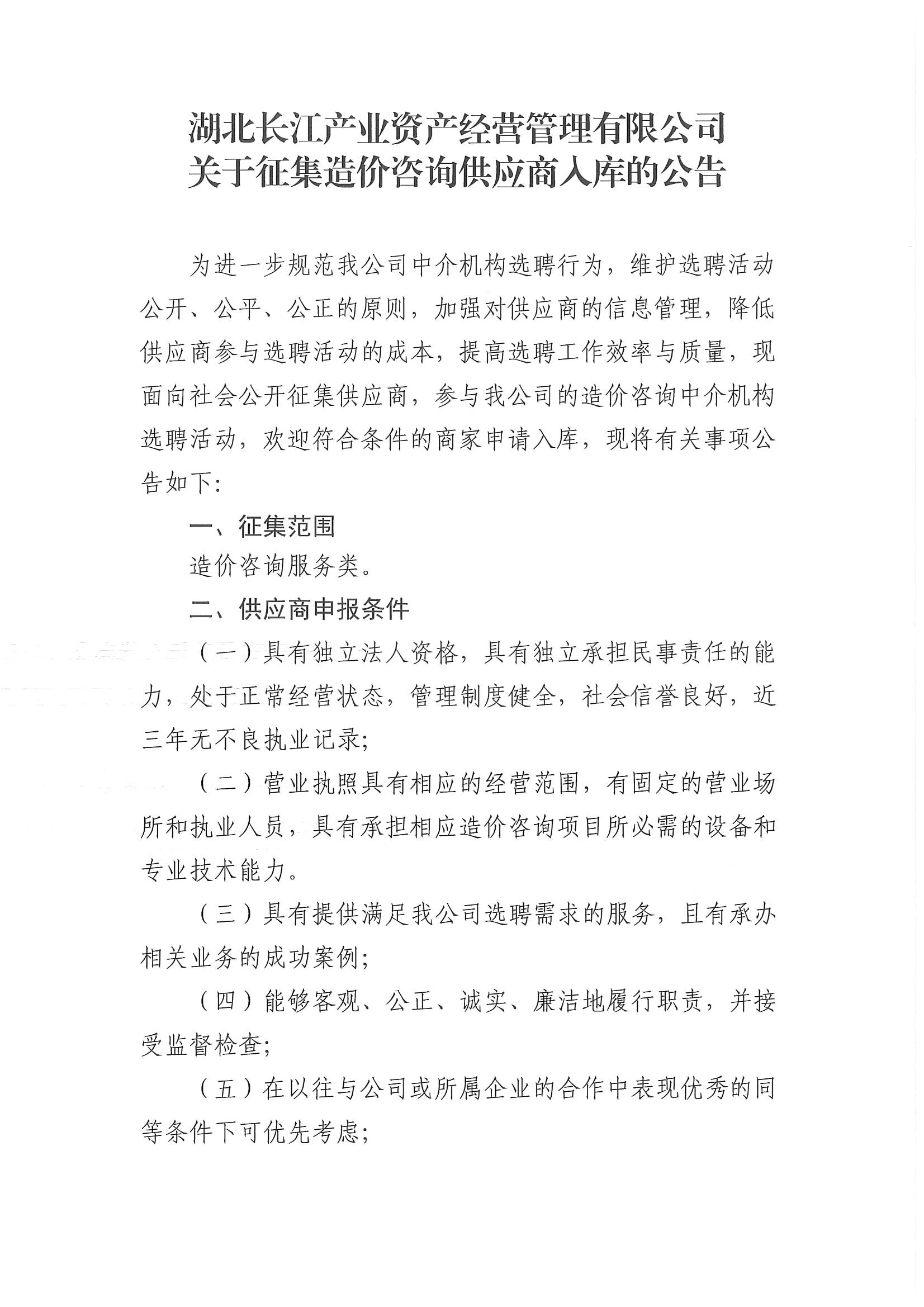 湖北长江产业资产经营管理有限公司 关于征集造价咨询供应商入库的公告
