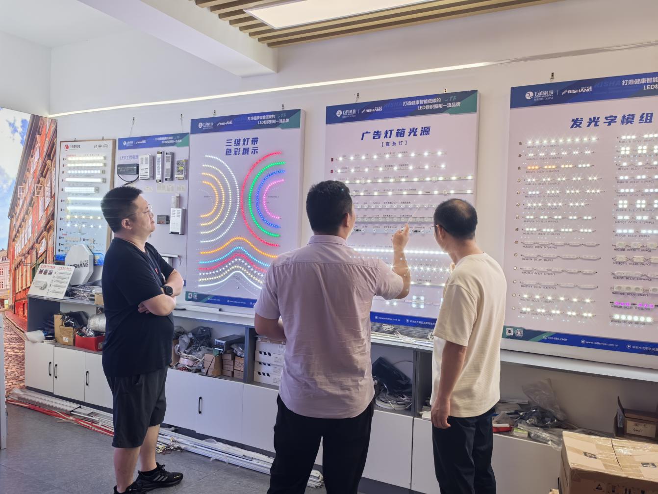调研期间,团队深入多家标识制作企业的生产一线,与企业负责人、技术及生产人员细致沟通,了解产品在安装便捷性、稳定性、显示效果与长期可靠性等方面的实际反馈。制作商对日上光电的产品质量表示认可,同时从实际应用角度对产品设计、材料工艺与安装规范提出了宝贵建议。