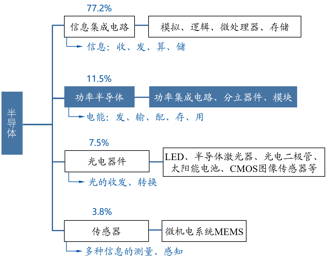 功率半导体应用广泛,从电网、高铁等高功率装备,到工业控制、新能源发电、电动汽车等中功率应用场景,再到家电、数码产品、手机等低功率日常消费电子产品中,功率半导体都扮演着不可或缺的电能转换、控制的角色。
