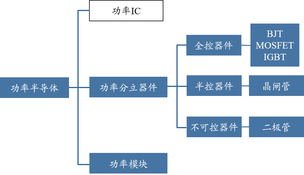 功率晶体管器件属于全控型器件,可以通过控制信号既控制其导通,又控制其关断。功率晶体管器件主要包括三极管BJT、金属氧化物半导体场效应管MOSFET、和绝缘栅型双极型晶体管IGBT。