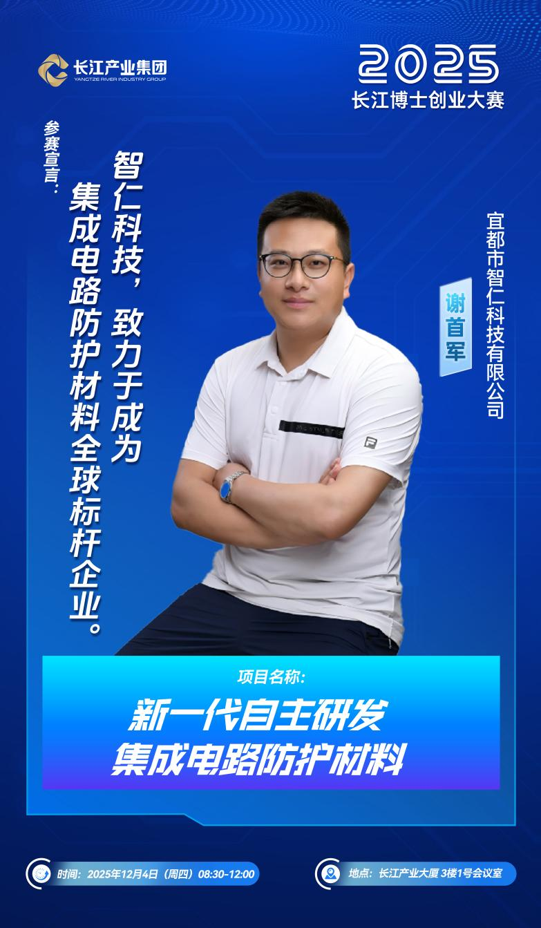 近日,在首届“长江博士创业大赛”决赛中,智仁科技凭借自主研发的UV三防胶得到投资机构认可,成为大赛十大优质项目之一。长江产业集团将为其提供从资金支持、创业孵化到政策配套、产业协同的全方位创新创业服务。