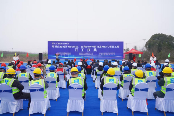 3月5日,湖北新能源旗下鄂新能(应城)能源开发有限公司应城汤池 90MW、义和 50MW 风力发电EPC项目开工仪式,在应城市汤池镇八汤线项目现场举行。应城市委常委罗培虎,长江产业集团党委委员、总会计师陈勇,湖北新能源党委书记、董事长姜功新,蒲鑫建设投资集团董事长韩志斌,湖北省电力规划设计研究院总经理佘志斌,中建三局绿色产业投资公司总经理雷耀祖等出席开工仪式。