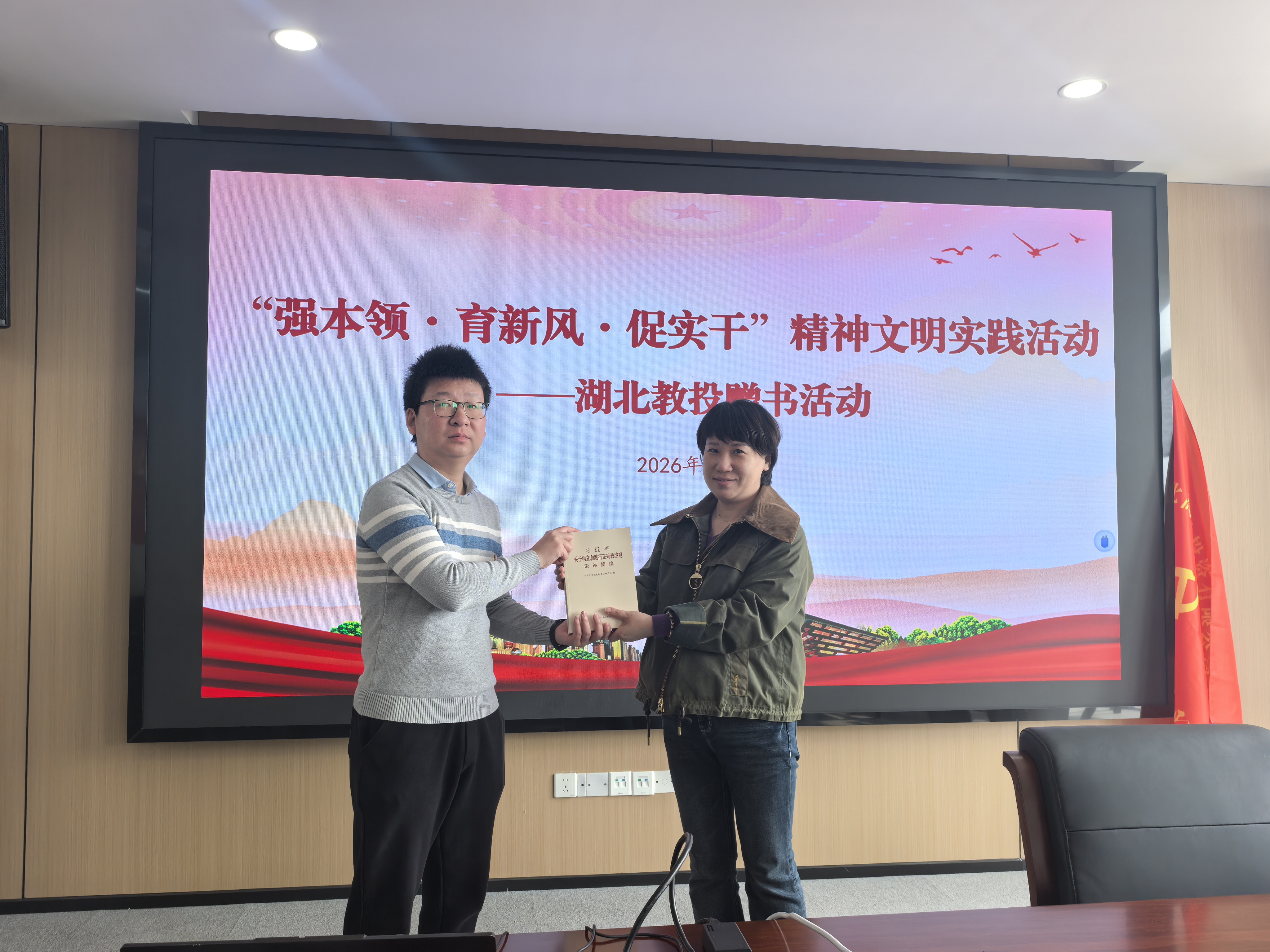 活动现场暖意融融、氛围浓厚,湖北教投副总经理、财务总监、总法律顾问陈芳为湖北高教投赠书,引导一线职工以阅读增本领、以学习强素养,为公司高质量发展注入思想动力和知识支撑。
