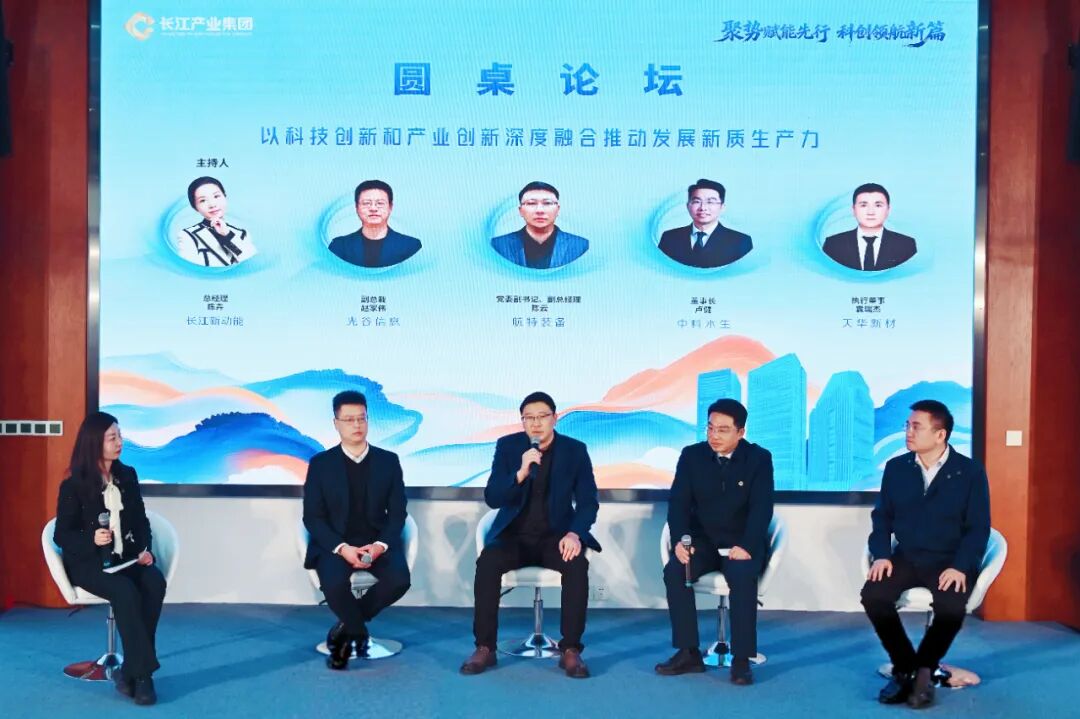 在圆桌论坛环节,航特装备、光谷信息、天华新材、中科水生等4家公众公司代表围绕“两新融合推动发展新质生产力”主题展开深入研讨。与会代表结合各自领域实践,分别就实体经济转型升级、数字经济发展、生态环境治理、新材料产业化等方面分享创新经验与成果,展现了集团战新产业生力军的蓬勃活力。这场高密度的科创成果分享,集中彰显了集团上市公司集群的科技“含金量”与创新“含新量”。