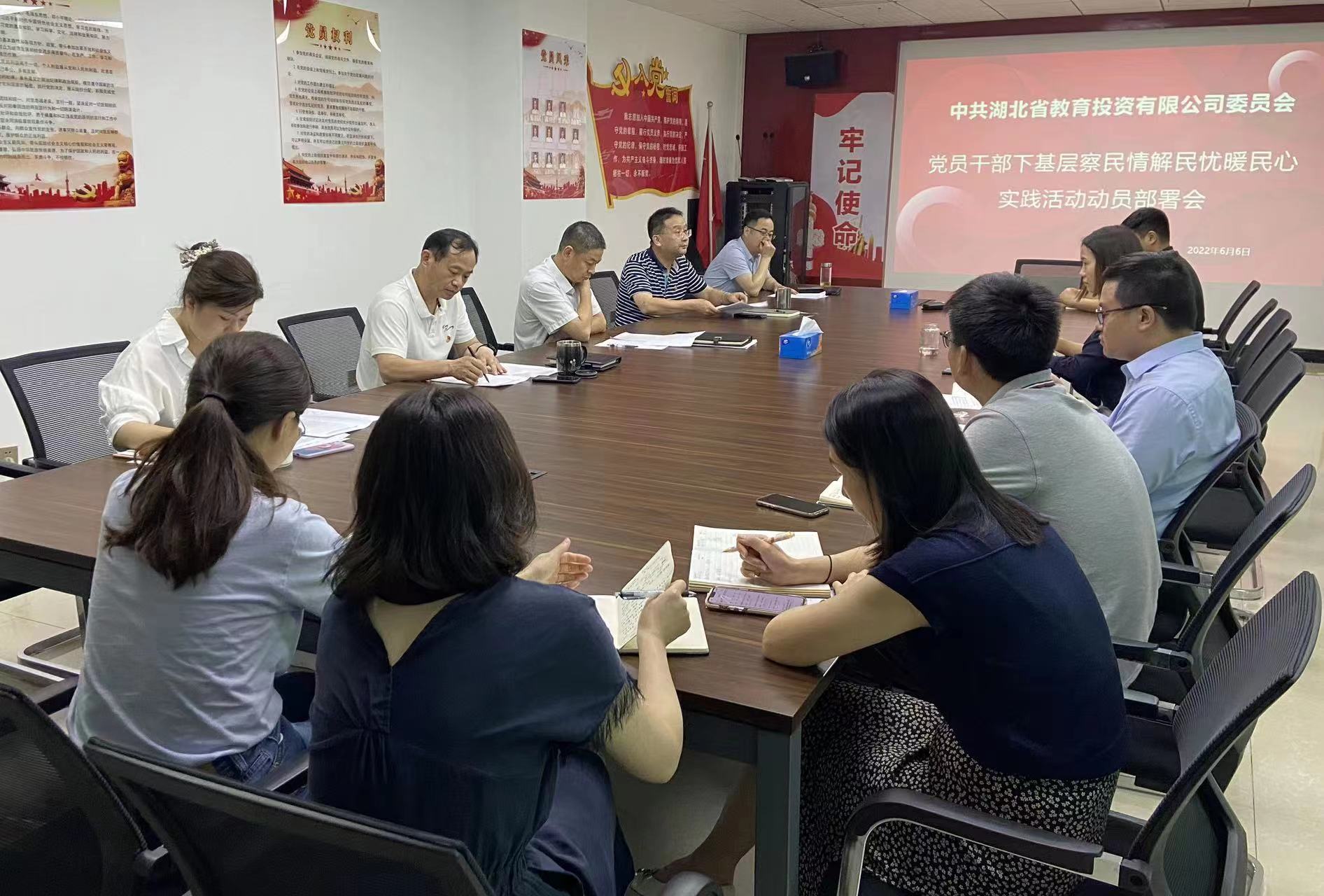 6月6日上午,省教投公司召开党员干部下基层察民情解民忧暖民心实践活动动员部署会。公司党委书记、董事长陈嗣春出席会议并做动员讲话,党委副书记、总经理项益明就《省教投公司召开党员干部下基层察民情解民忧暖民心实践活动实施方案》作说明。