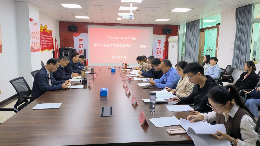 湖北教投党委聚焦党的二十大报告明确的新思路、新战略、新举措,通过覆盖式学习、矩阵式宣传和实践式应用掀起学习贯彻党的二十大精神热潮,锚定发展目标,结合业务实际,以高质量党建引领企业高质量发展。