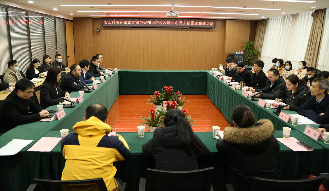 近日,长江科服直属党支部、华科公司党支部联合湖北省知识产权发展中心党支部开展党建联建,并围绕如何协同助力知识产权经济发展进行座谈交流。长江科服党委书记、董事长易琳,党委委员、副总经理徐东(代行总经理职责),湖北省知识产权发展中心党支部副书记、副主任马竣等参加活动。