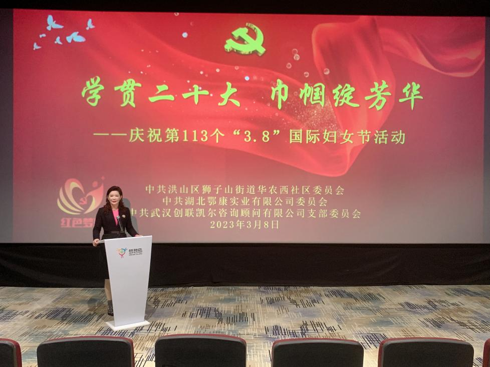 为深入学习贯彻党的二十大精神,丰富女职工业余文化生活,展示新时代女性风采,凝聚园区“半边天”力量,2023年3月8日,洪山狮子山街道华农西社区党委、长江投开下属鄂康党委和武汉创联凯尔党支部联合组建的“红色梦想”党建联盟,在华农里梦想岛举办了以“学习二十大 巾帼绽芳华”为主题的第113个国际妇女节庆祝活动,党建联盟三方主要领导参加本次活动。