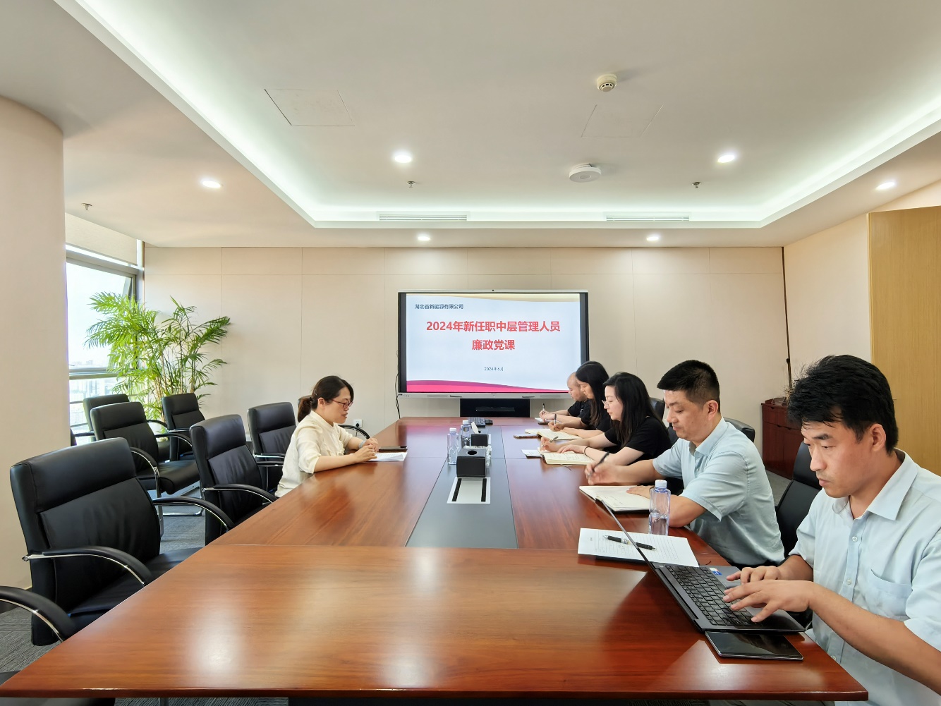 湖北新能源2024年新任职的部门主要负责人、新能源场站长代表参加党课学习。
