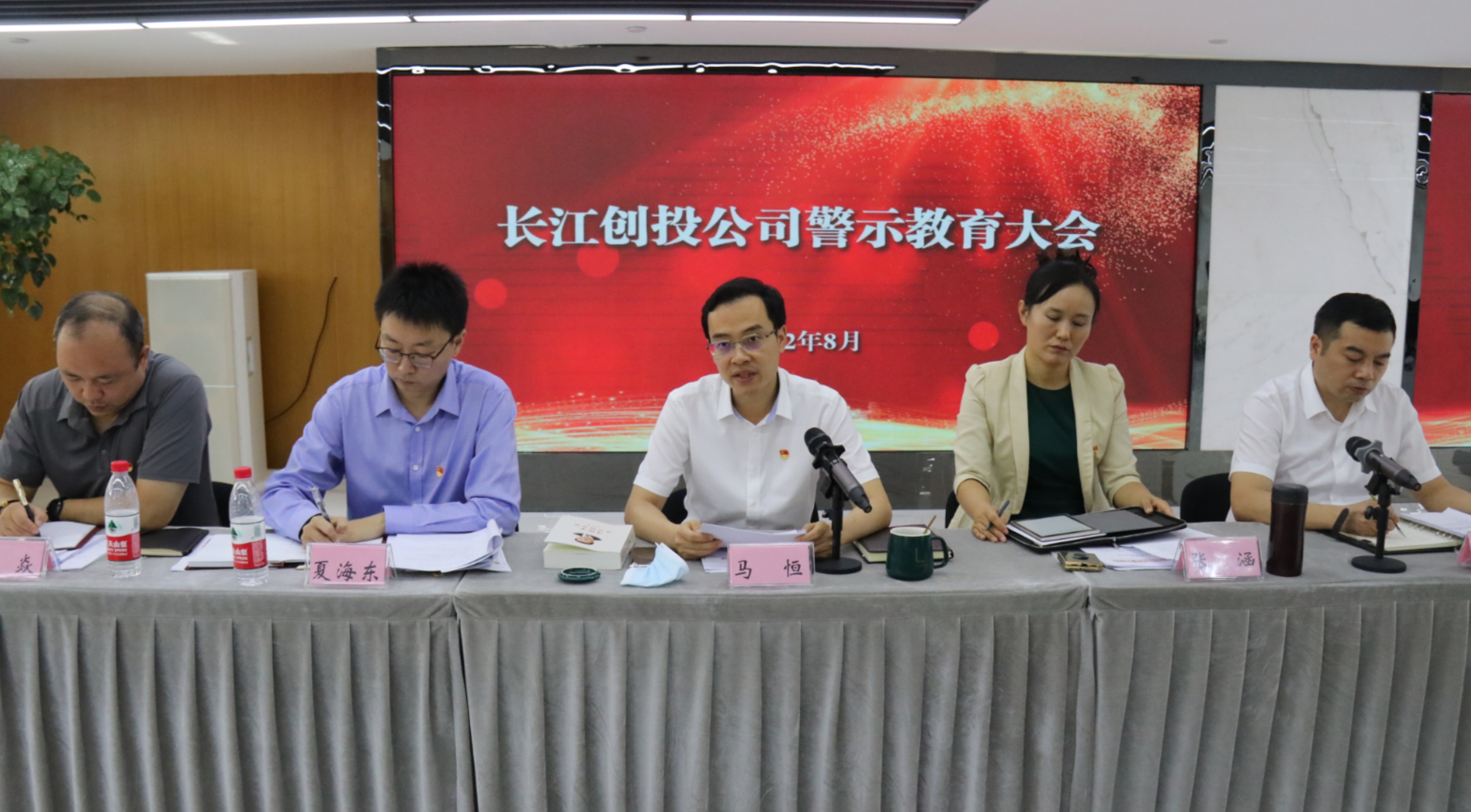 2022年8月16日,长江创投公司党委召开警示教育大会,对推进清廉国企建设和党风廉政宣教月活动进行了安排部署。公司党委书记、董事长马恒出席会议并讲廉政专题党课,会议由公司总经理张涵主持。