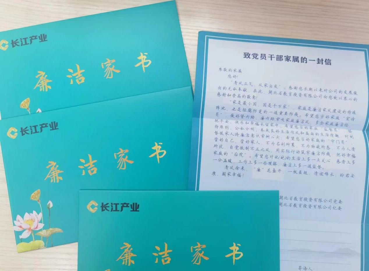 为发挥亲情监督预防作用,营造以家倡廉、以家助廉、以家促廉的良好氛围。近日,湖北省教育投资有限公司结合党风廉政宣教月开展了“清风寄语 家书话廉”的活动,进一步引导全体党员干部员工家属筑牢“知廉、倡廉、助廉、守廉”意识。