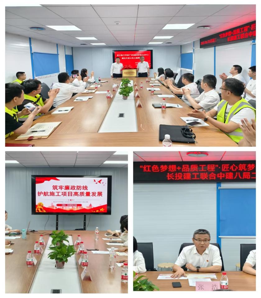 技能比拼的“热力值”背后,是党建赋能项目建设的系统化布局,长投建工与中建八局二公司共同为黄石临空科创产业园新建项目(EPC)“廉洁共建示范点”揭牌,跨企业监督联动机制正式启动,为项目合规建设装上“双保险”。鄂康施工企业联合党支部支部书记、长投建工董事长张浩以《筑牢廉政防线,护航施工项目高质量发展》为题讲授专题党课。他强调,施工项目是企业发展的前沿阵地,也是廉政建设的关键战场,我们要深入贯彻落实习近平总书记关于作风建设的论述和党规党纪要求,充分认识廉政建设的重要性,以清正廉洁之风护航施工项目高质量发展。