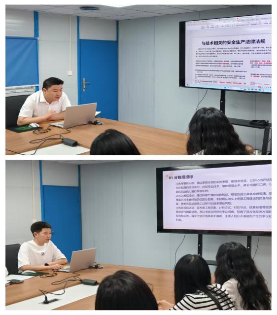 为筑牢施工安全防线夯实理论根基,实现成本有效管控,提升项目经济效益,长投建工耿鑫、谭瑶尧等青年员工分别以《建设工程施工安全技术》《精打细算守好成本底线,合规利剑斩断浪费根源》为题进行培训,系统讲解施工风险防控要点,剖析合规管理与降本增效的融合路径,为公司拧紧了施工安全的“思想阀门”,标出了成本管控的“红线”。