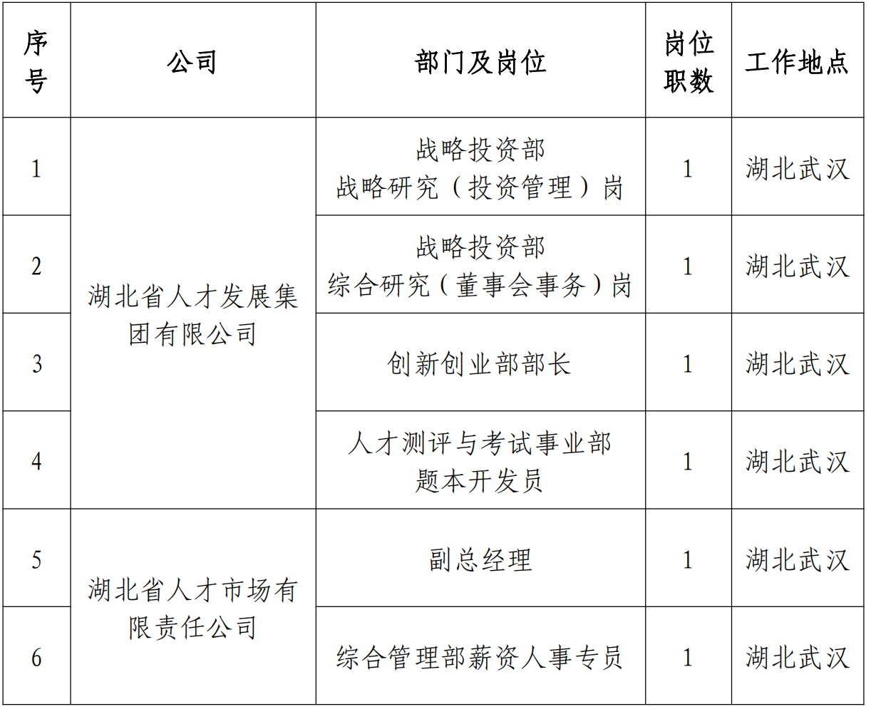 岗位职责、任职资格以及用工形式详见《湖北省人才集团招聘明细表》(附件1)。