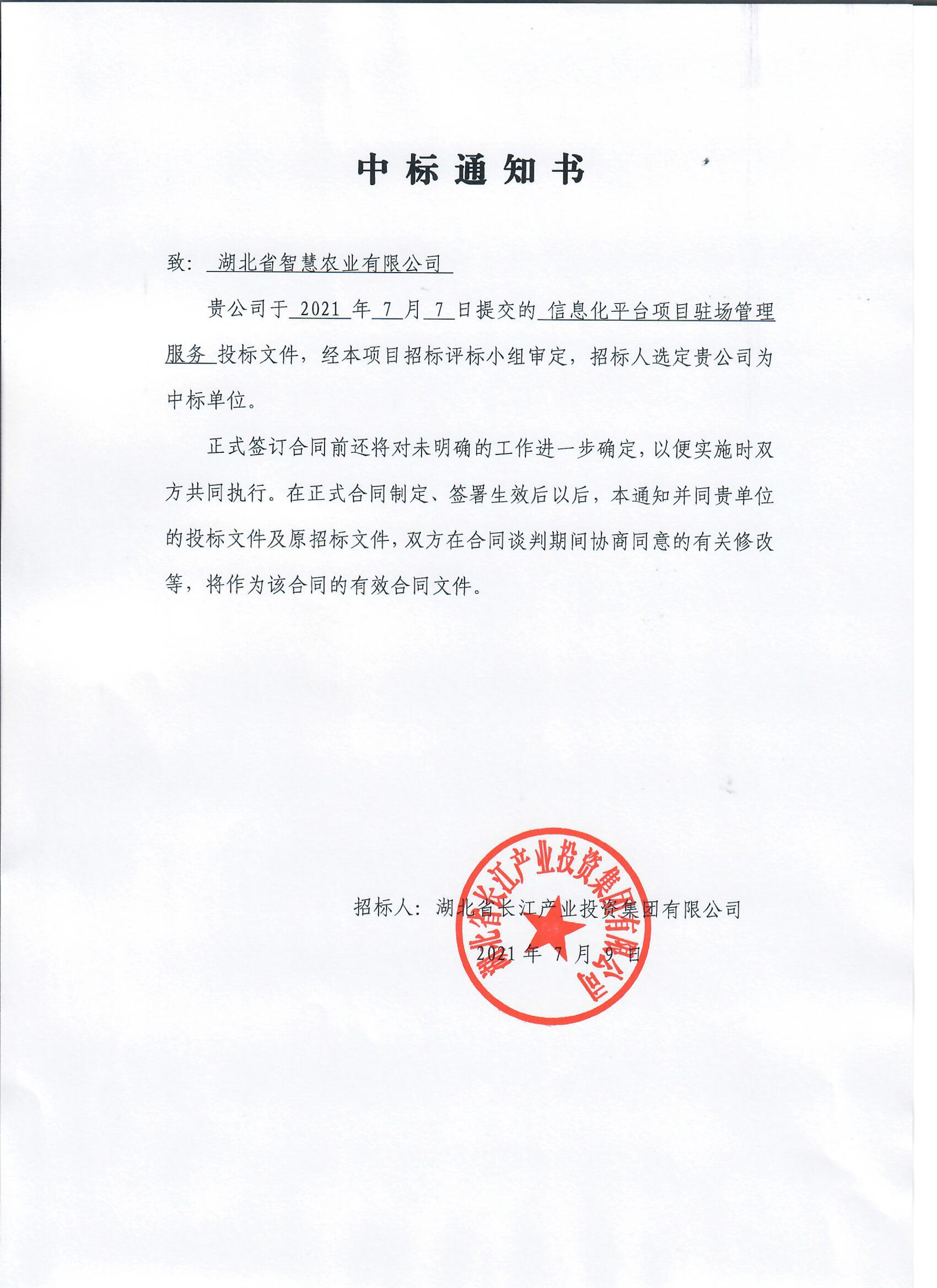湖北省长江产业投资集团有限公司信息化平台项目中标通知书(1)