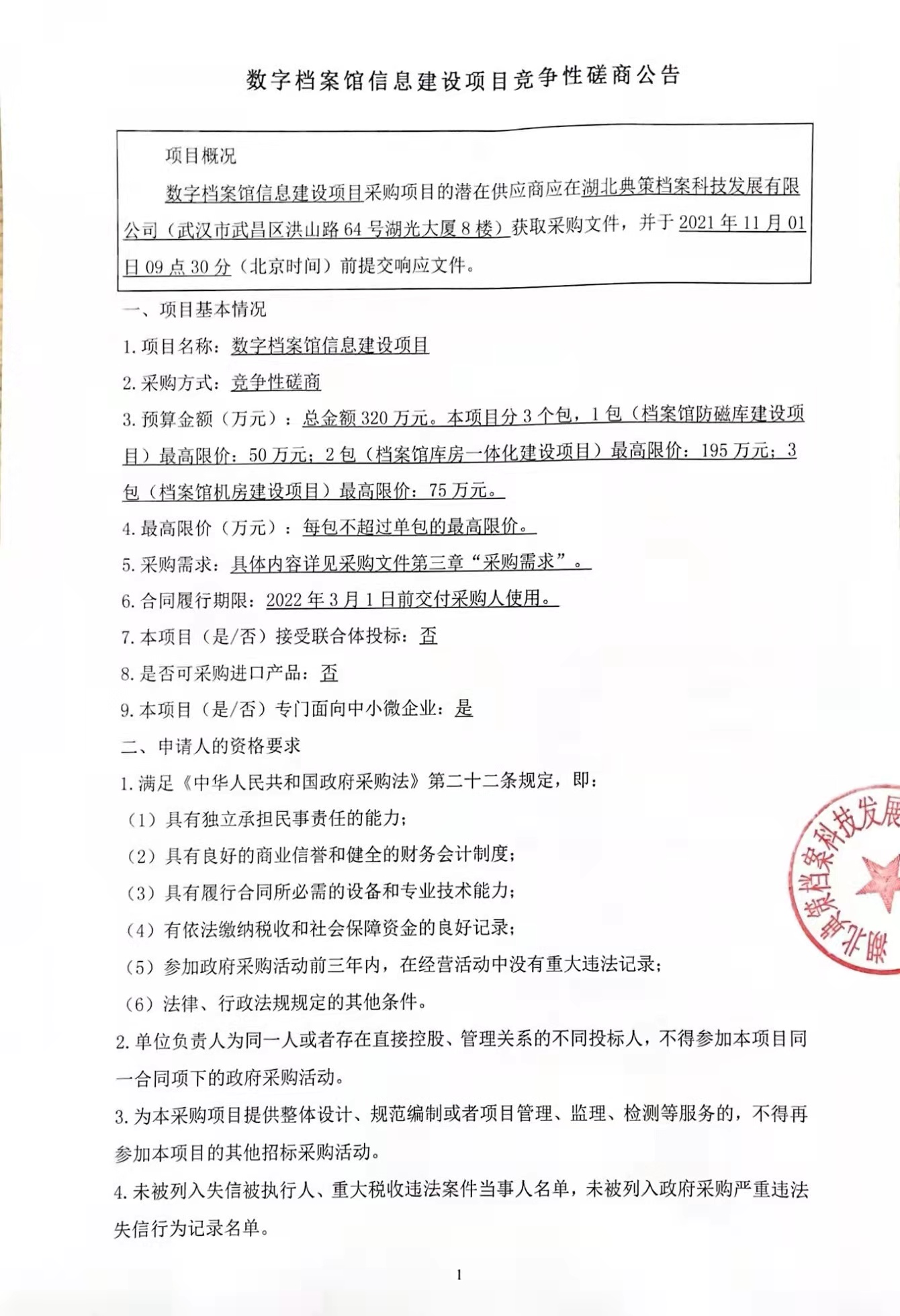 数字档案馆信息建设项目竞争性磋商公告