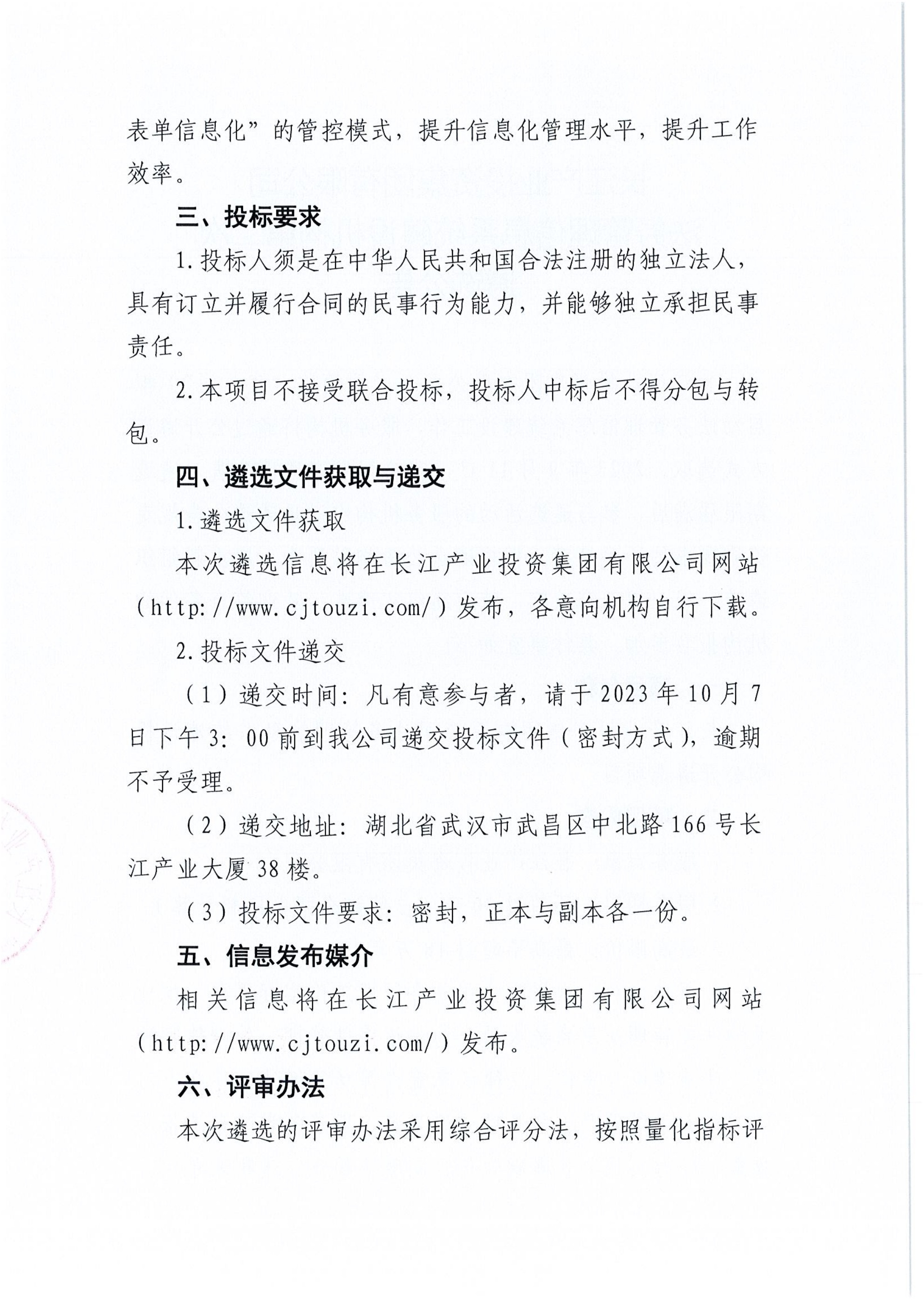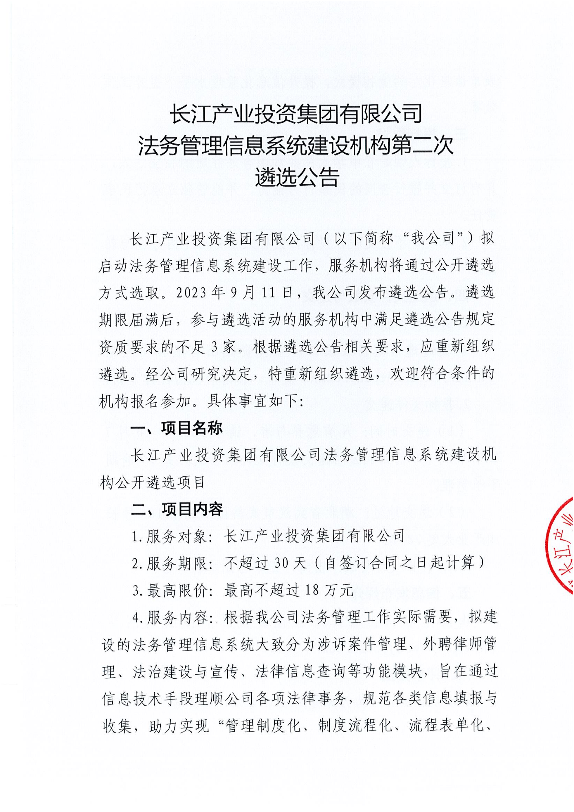 长江产业投资集团有限公司法务管理信息系统建设机构第二次遴选公告