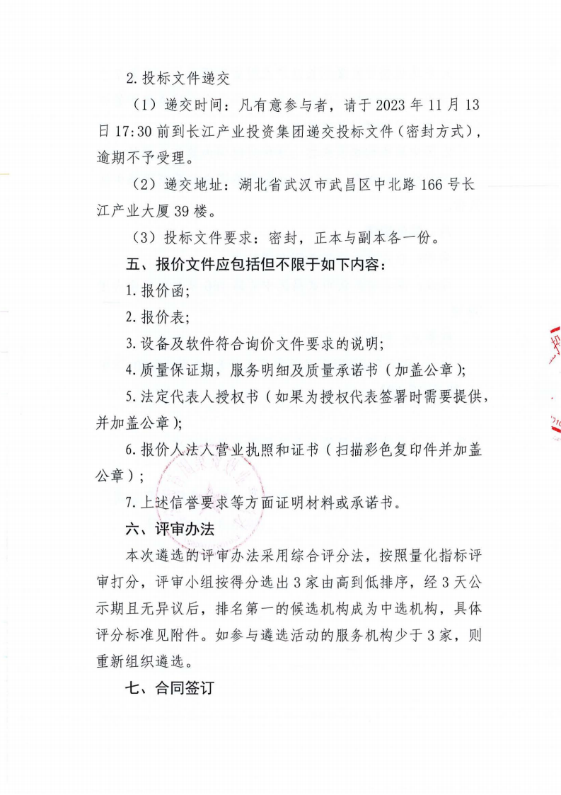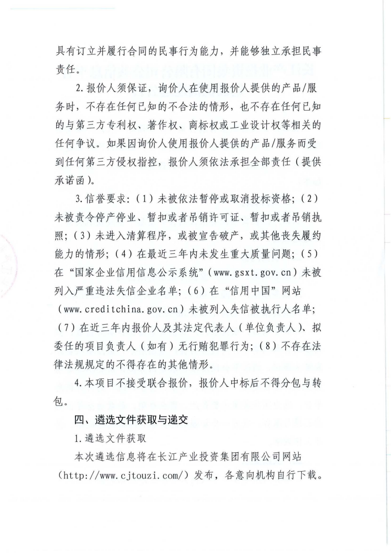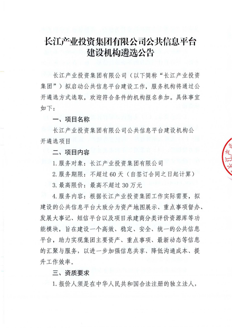 长江产业投资集团有限公司公共信息平台建设机构遴选公告