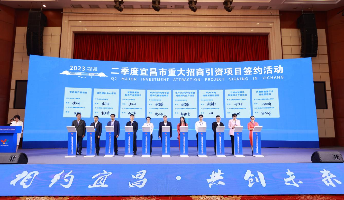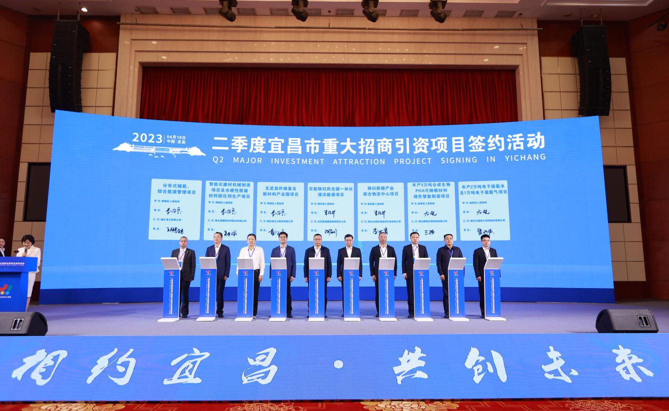 4月18日,2023年二季度宜昌市重大项目招商引资活动签约仪式在宜昌市桃花岭饭店举行。长江新材分别与枝江市签约绿色建材产业园项目,与夷陵区签约玄武岩纤维复合新材料产业园项目,两大项目合计总投资额达47亿元。