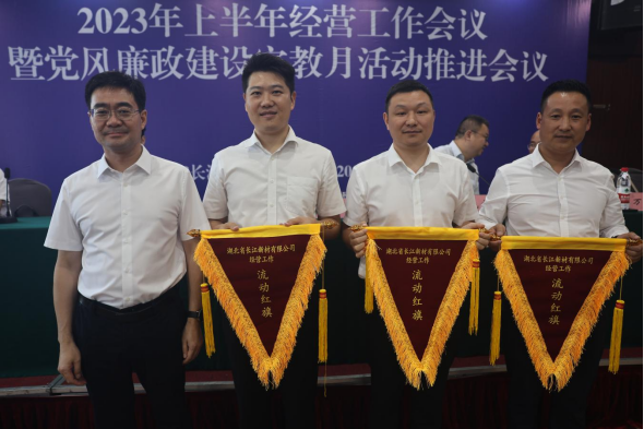 万江华宣布了公司2023年上半年经营考核结果,公司党委书记、董事长童卫宁为经营考核前三名的单位授予“流动红旗”。同时,对经营考核后三名的单位,由工作人员授予“流动黄旗”。材料公司、宜都公司和枝江公司分别在会上进行了经验交流。