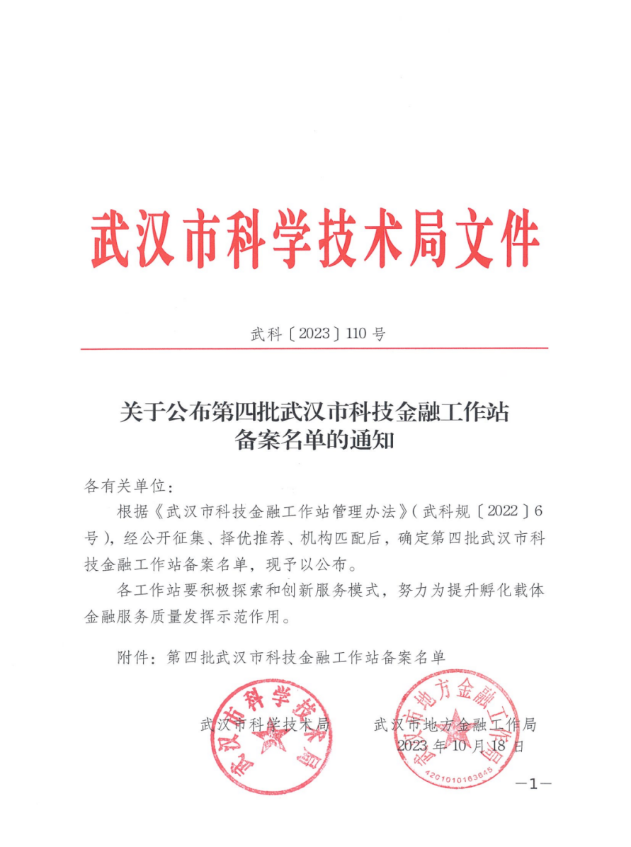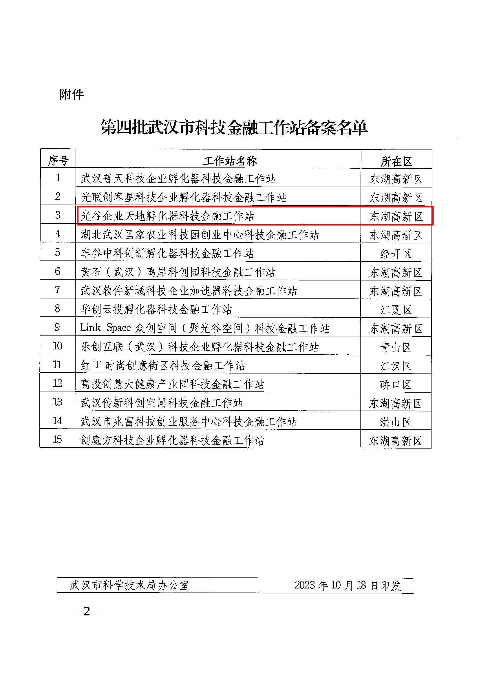 近日,武汉市科学技术局公布了第四批市级科技金融工作站的备案名单,光谷企业天地孵化器成功获批市级科技金融工作站备案。