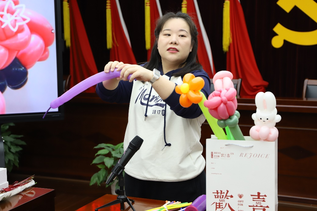 活动现场,由公司“我有一绝”技能能手周峻峰任老师进行现场指导,她用通俗易懂的语言讲解气球扎花的基本技巧,并动手示范气球花的各种造型,让大家初步了解了气球花的基础知识。老师耐心地示范,大家认真地跟学,充分发挥想象力和创造力,亲身实践创作,感受创意扎花活动带来的快乐。作品完成后,大家手捧气球花一边交流,一边拍照,在欢声笑语中收获了属于自己的精美作品。