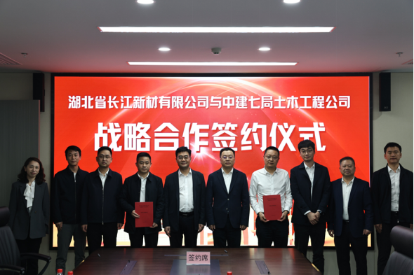 4月3日下午,湖北省长江新材有限公司(以下简称长江新材)与中建七局土木工程公司签署战略合作协议,长江新材党委书记、董事长童卫宁,长江新材党委副书记、总经理张晓雷,中建七局助理总经理、中建七局土木工程公司党委书记、董事长王勇出席签约活动,双方就深化战略合作进行深入交流。