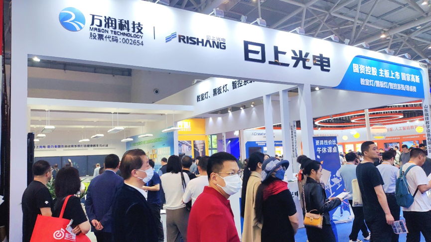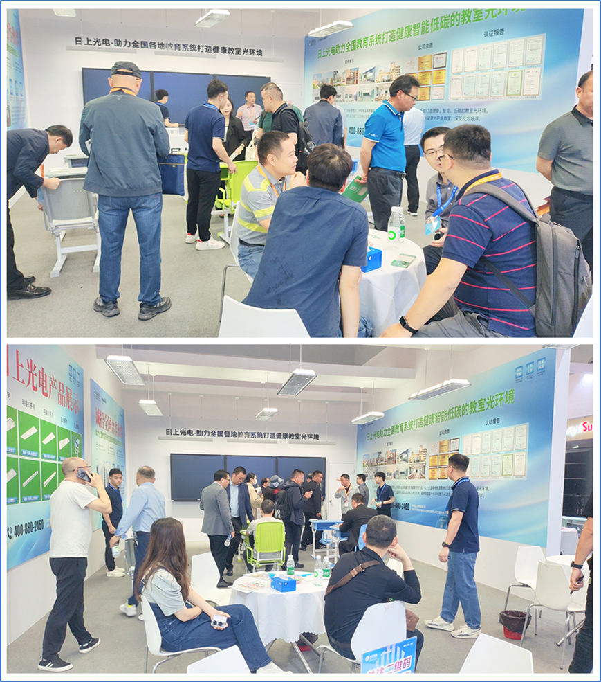 本次展会参展企业1300多家,展出面积20余万平方米,以“数字赋能教育,创新引领未来”为主题,展示了数字技术和人工智能在教育装备领域的新成果、新方向、新产品和新的整体解决方案。展览会上,日上光电重点展示教室照明新品、智控系统、多功能午休课桌椅,为全国各地教育系统提供最优质的教育照明解决方案与产品。