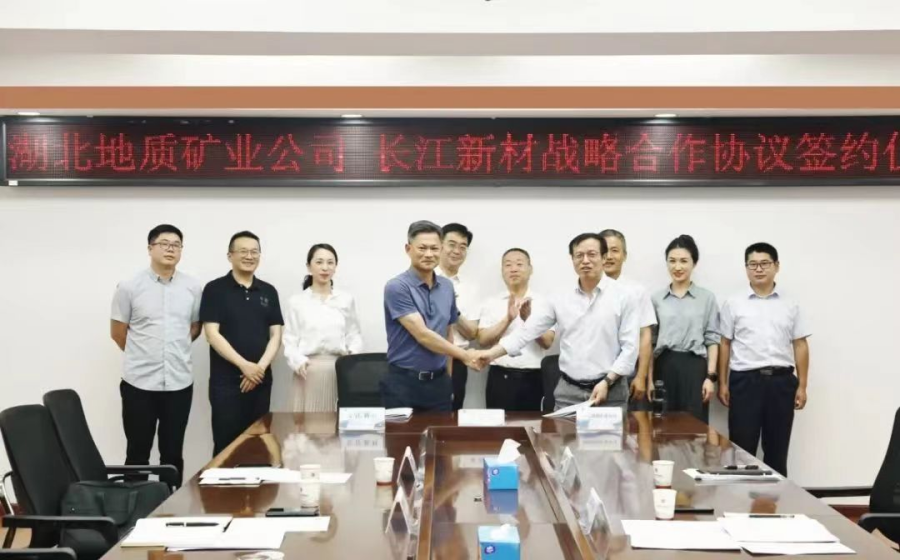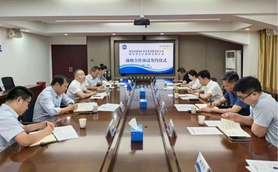 5月16日,湖北省长江新材有限公司(以下简称长江新材)与湖北省地质矿业开发有限责任公司(以下简称省地矿公司)签署战略合作协议。公司党委书记、董事长童卫宁,公司党委副书记、总经理张晓雷,省地矿公司董事长周文平、总经理杨首亚,省海外地质中心党委委员、副主任李彦等参加签约仪式。