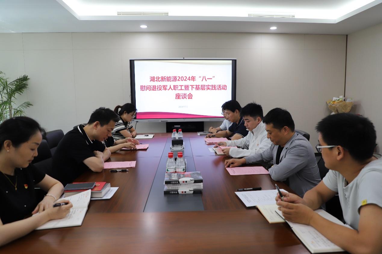 在“八一”建军节来临之际,为深入学习贯彻习近平总书记关于退役军人工作和双拥工作重要论述,彰显湖北新能源党委对退役军人职工的关心关爱,结合深化下基层实践活动,湖北新能源召开“拥军优属,情暖人心,以优良作风干事创业”“八一”慰问退役军人职工暨下基层实践活动座谈会。