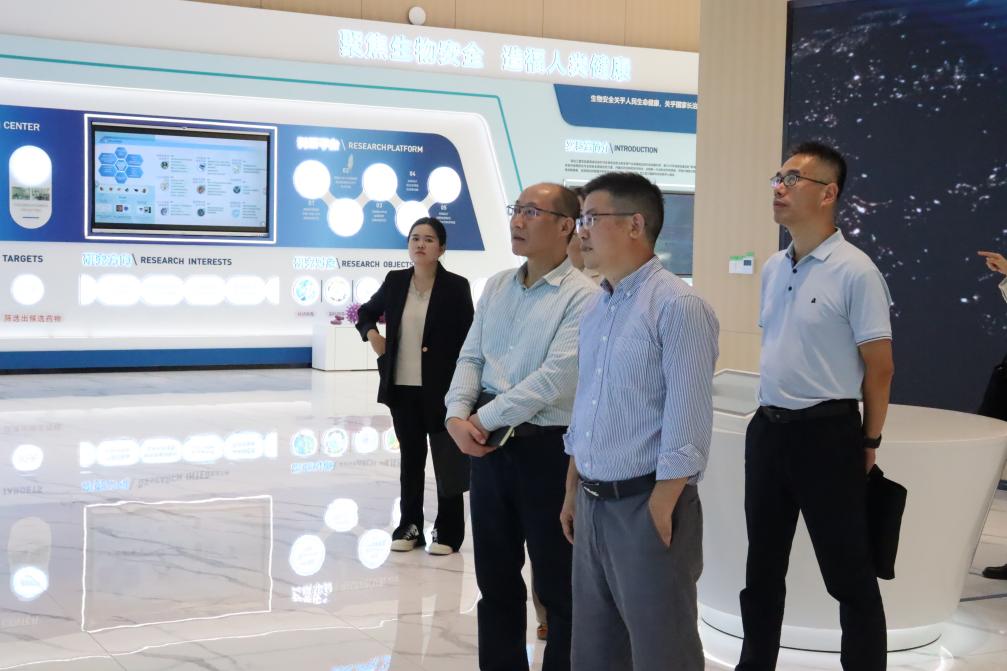 会前,大家参观了湖北江夏实验室一楼展厅,详细了解实验室的运作模式、研究方向和标志性成果。王勇对省人才集团一行的来访表示热烈欢迎,并简要介绍了湖北江夏实验室的基本情况。湖北江夏实验室是首批布局建设的7家湖北实验室之一,旨在凝聚湖北省内外新发突发传染病防控与生物安全领域优势力量,创制新一代侦检试剂和装备,研制并储备抗病毒疫苗和药物。他表示,实验室搭建的创新平台与高校科研院所、行业企业开展深度合作,培育孵化出了一批优质产业化项目,推动了光谷南大健康产业园集聚化发展。他希望,江夏实验室能更好地借助省人才集团在高端人才引育留用、科技成果转移转化等方面的优质资源,进一步深化合作,整合双方优质资源,打通技术转化、科技创新链条,促进湖北和中部地区生物医药产业高质量发展。