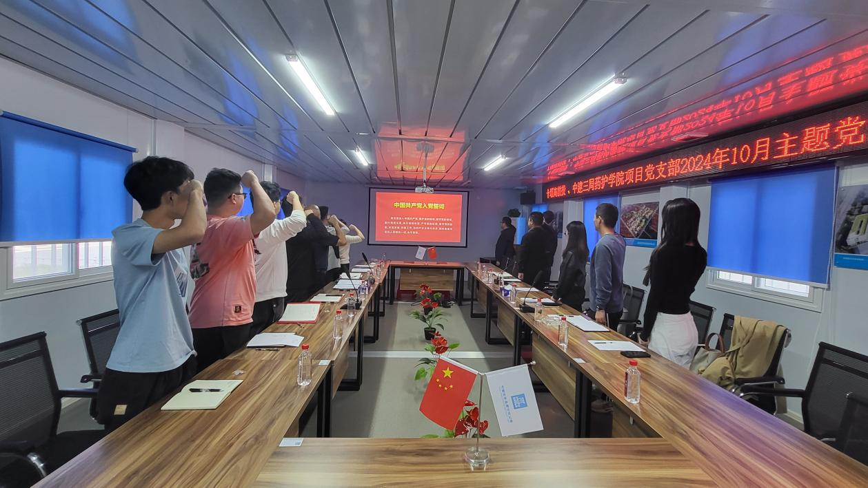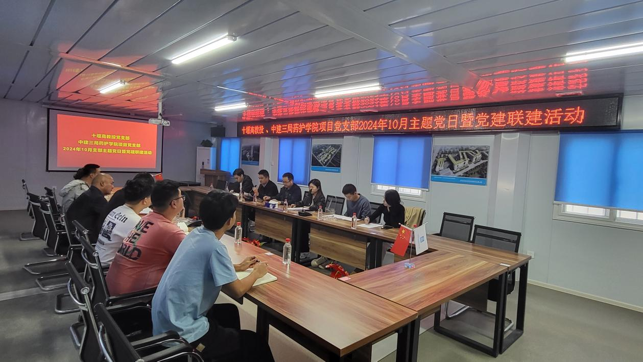 十堰高教投党支部全体党员、公司全体员工,中建三局药护学院项目支部全体党员参加活动。