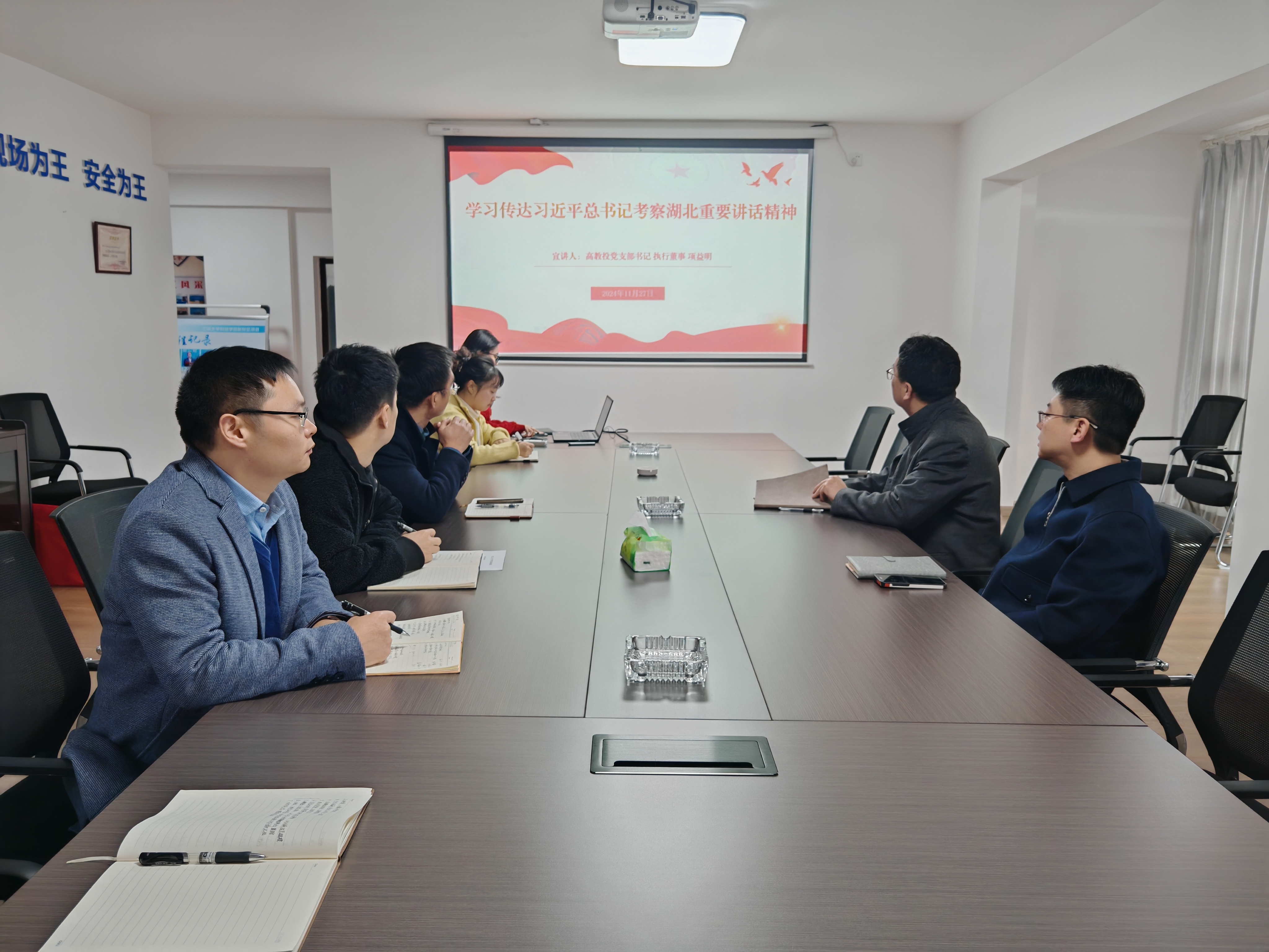 11月27日,湖北高教投党支部书记、执行董事项益明为支部全体党员及公司全体职工开展讲党课活动,传达学习习近平总书记考察湖北重要讲话精神,闻令而动、迅速部署,认真抓好贯彻落实。