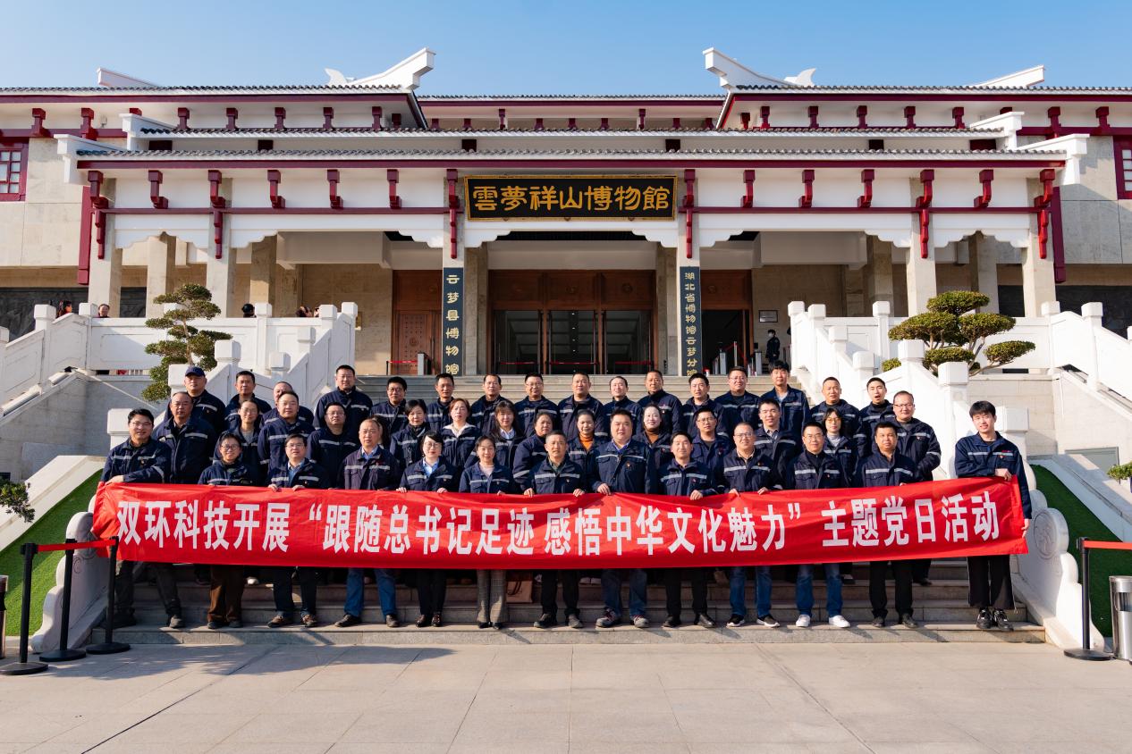 为深入学习贯彻党的二十届三中全会精神和习近平总书记考察湖北重要讲话精神,11月29日,双环科技组织开展“跟随总书记足迹 感悟中华文化魅力”主题党日活动,40余名党员干部职工一同走进云梦博物馆,感受中华文化深厚底蕴。