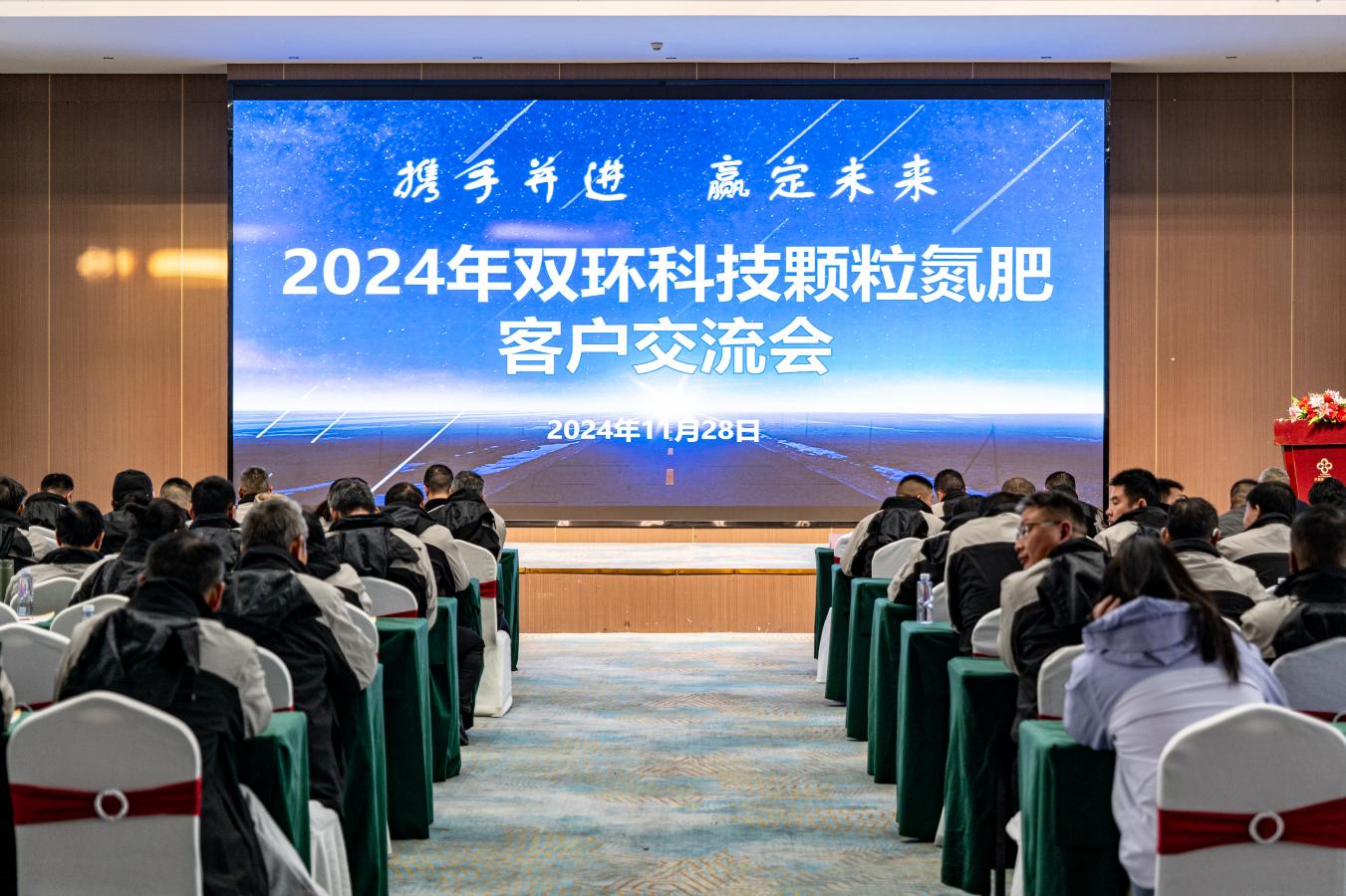 11月27日至29日,湖北双环科技股份有限公司成功举办以“携手并进,赢定未来”为主题的2024年颗粒氮肥客户交流会,来自全国各地的100余名颗粒氮肥客户齐聚一堂、共谋发展,旨在探索氯化铵行业的全新领域和新兴赛道,推进绿色高效肥料的研究和推广应用,为我国绿色发展提供重要的科技和产品支撑。