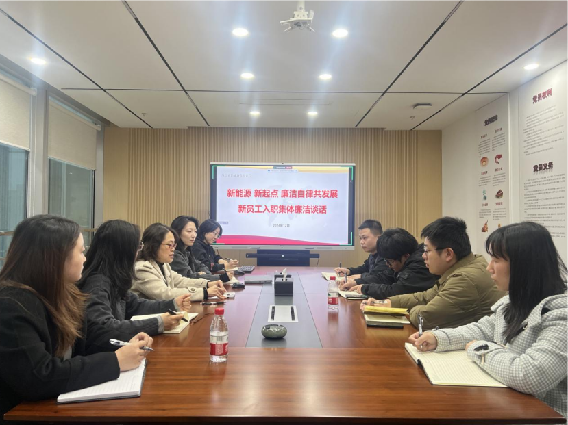 为落实全面从严治党工作要求,进一步加强公司党风廉政建设,提升新入职员工廉洁从业意识,筑牢防腐拒变底线,近日,湖北新能源对新入职员工开展集体廉洁谈话,公司纪委负责人出席活动并讲话。