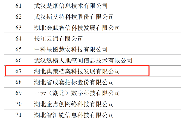 近日,湖北省数据局发布了《湖北省数据要素型企业(第一批)拟登记入库名单》的公示,经过严格的企业申报、逐级审核以及专家评审等程序,湖北典策档案科技发展有限公司(以下简称“湖北典策”)成功入选数据技术企业名单,成为湖北省数据要素型企业的重要组成部分。