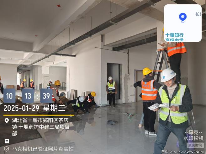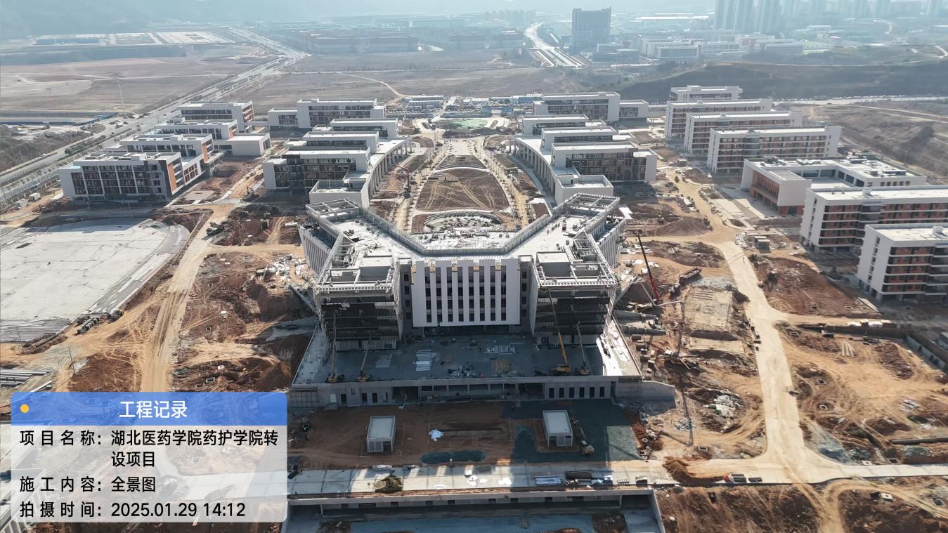 湖北医药学院药护学院转设项目位于十堰市郧阳区茶店镇长坪村,占地面积约875亩,规划总建筑面积约35万平方米,可容纳本科在校生10000人。本期建设首批次办学建筑,包括综合楼、实验楼、实训楼等14栋主要单体建筑,目前正在紧锣密鼓地开展内、外装修及室外景观工程收尾工作。该项目体量大、工期短、任务重,为保障项目如期竣备、顺利转设,长江投开加大平台支持力度,靠前指导,工程代建项目部立足实际谋划项目全盘、全程。为实现春节不停工,确保现场工作有序有力推进,工程代建项目部提前一个月从“人、财、材、制”四方面协调沟通业主、监理、总包三方,达成一致,即:一是确定春节加班建筑工人,各单位安排精兵强将在现场值班值守;二是协调业主春节前足额支付工程款,督促总包优先保障工人工资和材料设备订货款支付;三是开列春节前后施工需用材料供货清单,确保现场作业进度和材料设备储备匹配;四是依法依规依制度在春节前全面排查、治理现场安全问题和隐患,多层面开展安全教育交底,节间高频巡查现场,重点部位全程旁站,不留安全死角。