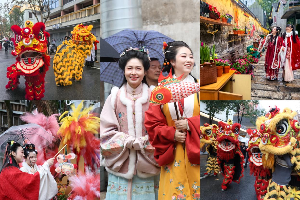 青年新片场—二马路 City walk 青年漫游行动,以数字赋能,吸引年轻人用脚步探索街区魅力;二马路、红星路贺岁新片场—醒狮舞龙迎新春,热闹非凡的醒狮舞龙表演,瞬间点燃贺岁氛围,传递出浓浓的新春祝福;国风新片场—“Happy 遛 Year 国风巡游快闪”惊喜上演,演员们身着华服,手提红灯笼、传统手工艺品,宛如从历史中走来,与现代街区相映成趣,瞬间点燃街区热闹氛围;试库广场新春新片场—灵蛇纳福 巳巳如意”新春游园会上,处处洋溢着热闹祥和的氛围。市民与游客们纷至沓来,他们穿梭于各个特色打卡点,兴致勃勃地参与二马路历史文化街区新地标打卡集章活动及新春游园活动,现场欢声笑语不断,浓浓的年味扑面而来;精彩纷呈的活动,使二马路历史文化街区成为新春热门打卡地,移步换景,处处皆是惊喜,吸引着不同年龄层的市民和游客共享文化盛宴,共度欢乐时光。
