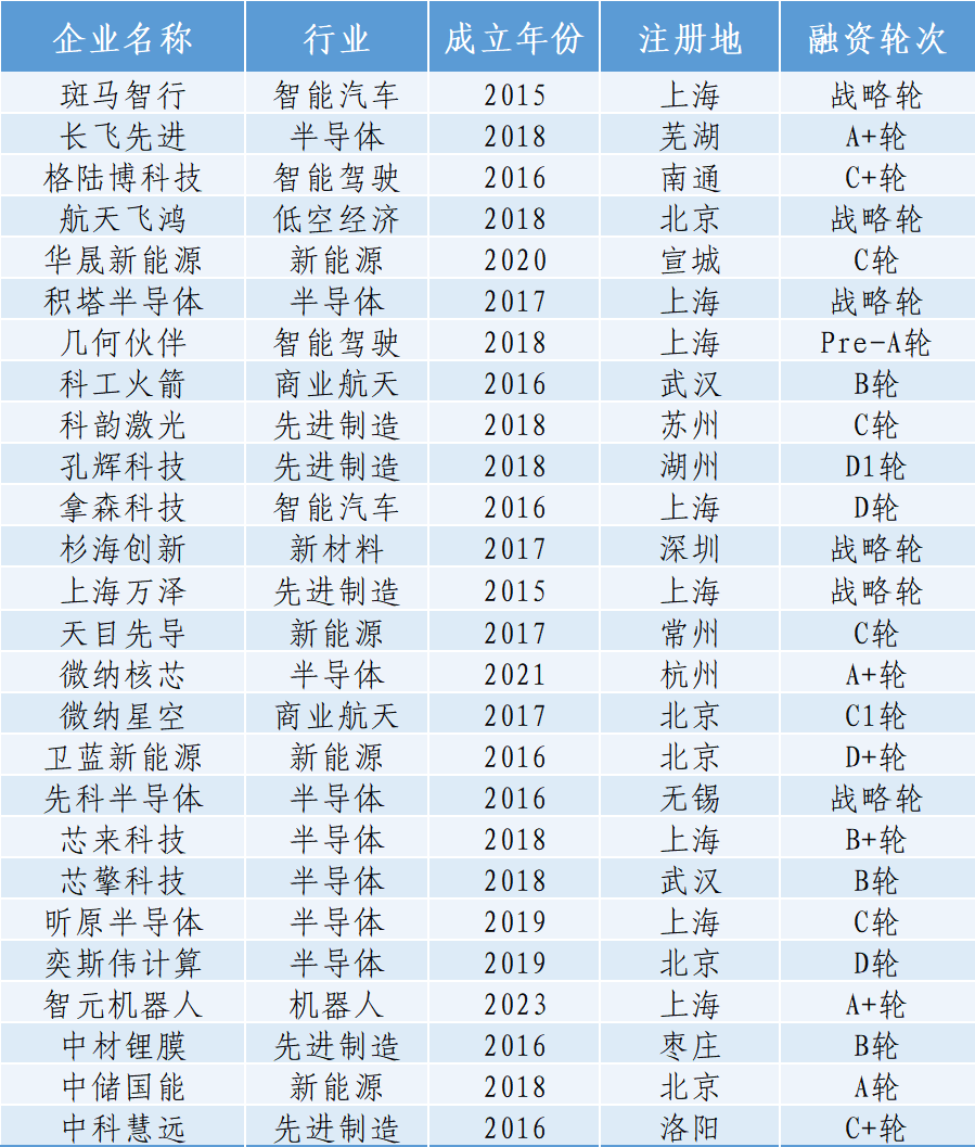其中,长江创投旗下基金26家已投企业入选该榜,包含芯擎科技、长飞先进、科工火箭、智元机器人等。上榜企业主要涉及半导体、先进制造、新能源、智能汽车、机器人、低空经济等新兴行业。