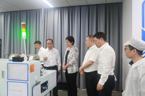 4月24日,深圳市光明区委书记蔡颖带队到万润科技调研,参观万润科技生产车间,听取公司党建和经营发展情况汇报,并就深化政企合作开展交流座谈。