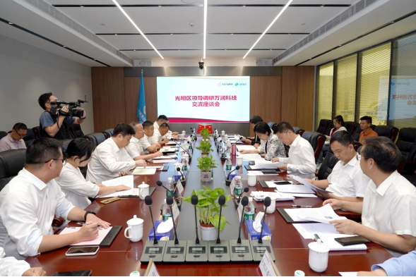 深圳市光明区委常委、副区长王芳成,区委常委、区委区政府办公室主任李兴亮,区工信局、教育局、政数局、凤凰街道主要负责同志;万润科技全体班子成员、相关子公司负责同志参加座谈。