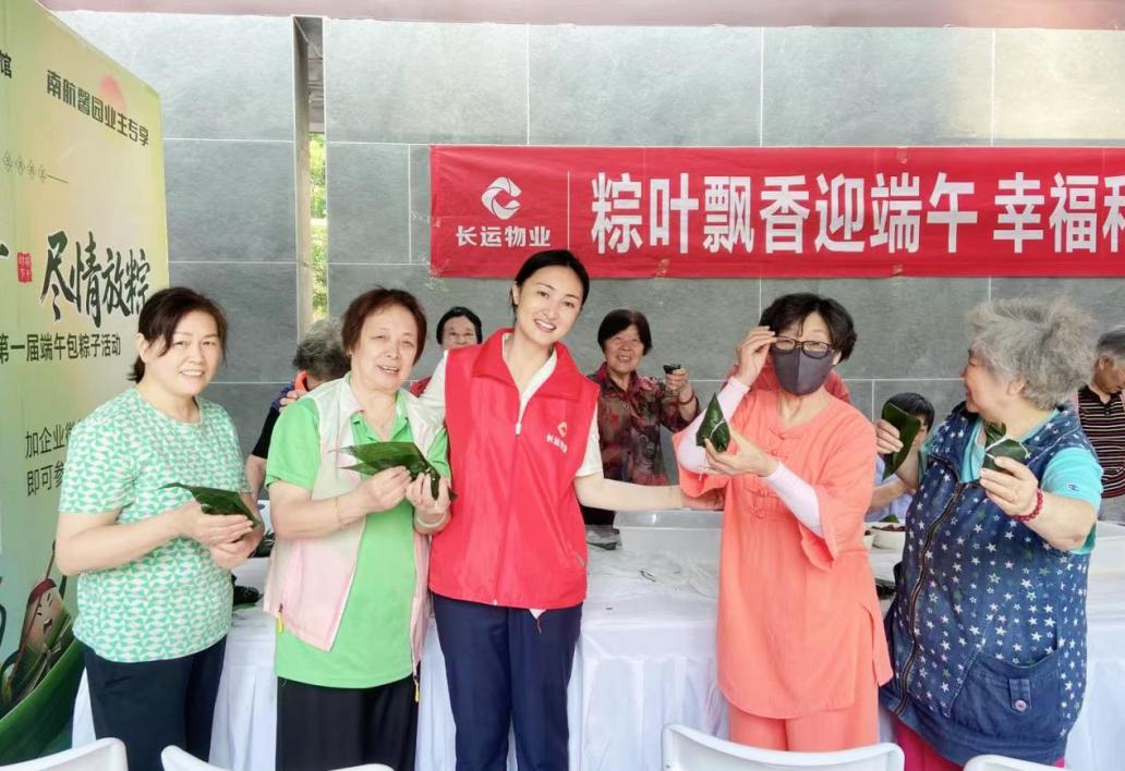 蘭园、南航馨园、海德公园等住宅项目中,长运物业开展了一系列富有温情的端午节便民活动,紧扣“党建+服务”,充分发挥物业运营职能,将端午温情融入社区肌理。