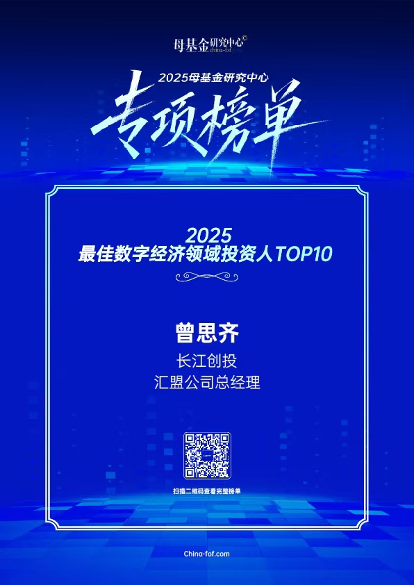 9月1日,2025母基金研究中心专项榜单正式揭晓,长江创投凭借综合实力与业绩表现,成功入选“国资直投机构最佳回报TOP30”(第8名),并凭借在新能源、半导体、数字经济等领域的突出投资业绩,荣获“最佳新能源与新材料领域投资机构TOP30”“最佳半导体领域投资机构TOP30”“最佳数字经济领域投资机构TOP20”三项产业赛道机构奖项。同时,长江创投长江长信执行董事张加强、汇盟公司总经理曾思齐分别荣登“最佳半导体领域投资人TOP20”“最佳数字经济领域投资人TOP10”榜单。