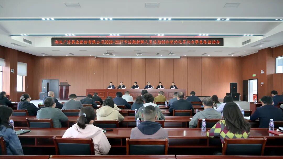 10月24日,广济药业召开2025-2027年任期制和契约化签约会。公司班子成员、高管,各分、子公司新聘人员以及总部中层管理人员、总部全体员工参加会议。