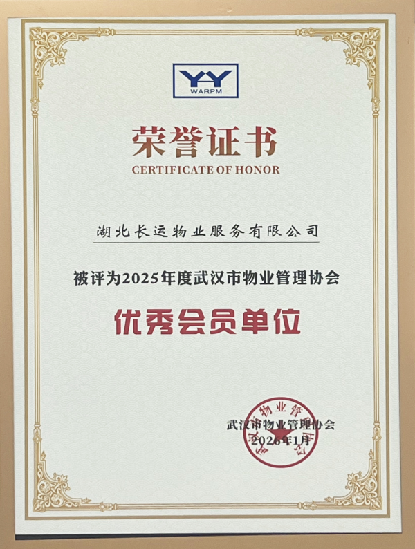 长运物业公司还荣获湖北省物业管理协会、武汉市物业管理协会颁发的2025年度“优秀会员单位” 称号,行业协会对公司积极参与行业建设、推动规范发展给予充分肯定。