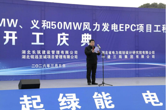 3月5日,湖北新能源旗下鄂新能(应城)能源开发有限公司应城汤池 90MW、义和 50MW 风力发电EPC项目开工仪式,在应城市汤池镇八汤线项目现场举行。应城市委常委罗培虎,长江产业集团党委委员、总会计师陈勇,湖北新能源党委书记、董事长姜功新,蒲鑫建设投资集团董事长韩志斌,湖北省电力规划设计研究院总经理佘志斌,中建三局绿色产业投资公司总经理雷耀祖等出席开工仪式。